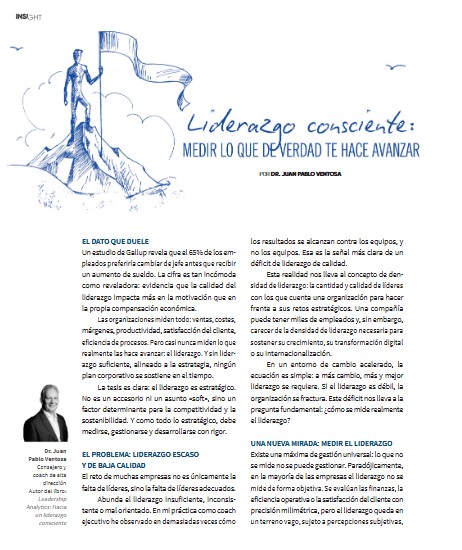 El iderazgo es estratégico. Es un factor determinante para la competitividad y la sostenibilidad. Y como todo lo estratégico, debe medirse, gestionarse y desarrollarse como rigor.
